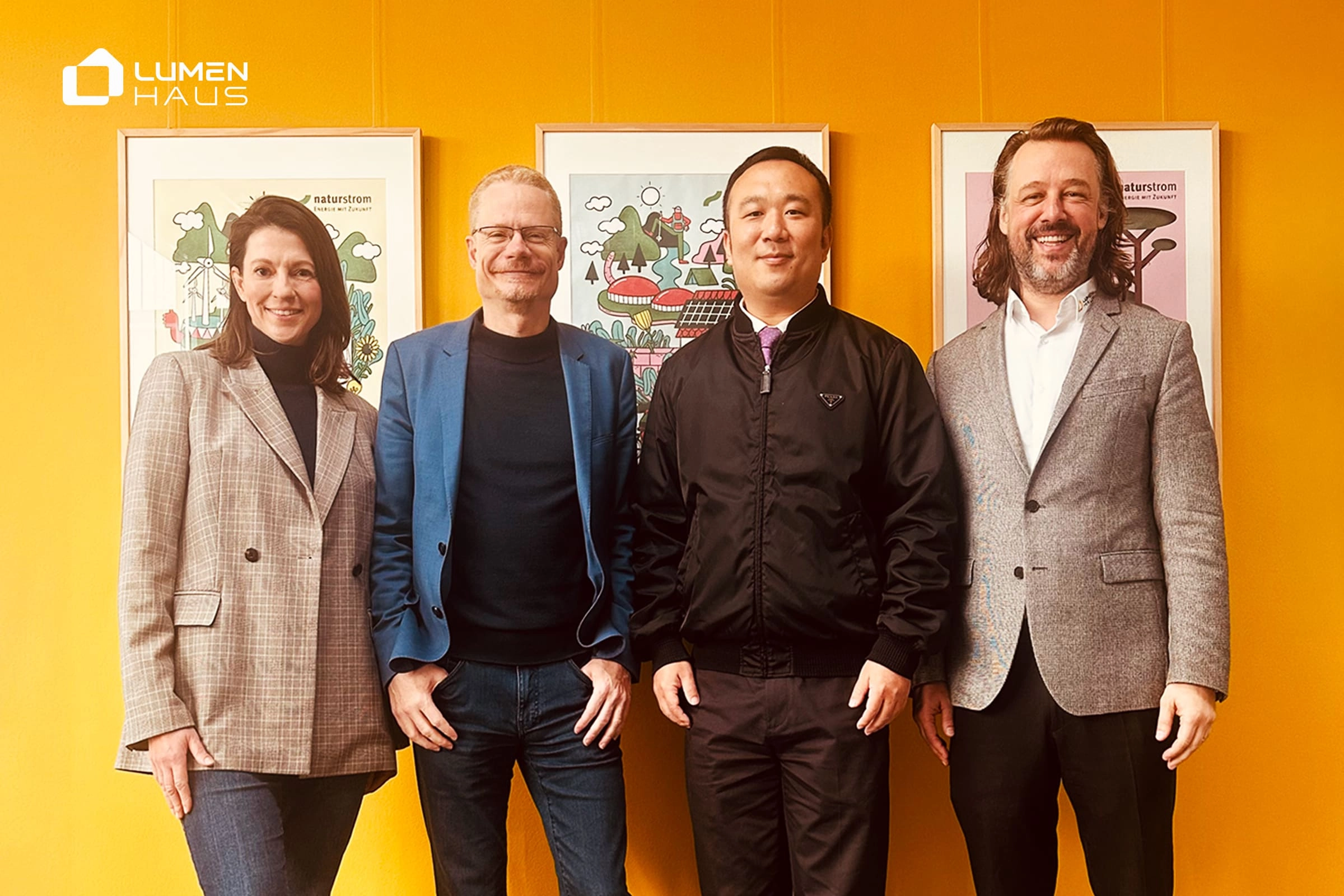 From left to right: Saskia Richter (naturstrom Head of Product Marketing), Oliver Hummel (naturstrom CEO), Dr. Dai Wang (LumenHaus Co-Founder), Adrian Bühler (LumenHaus Marketing Director)
